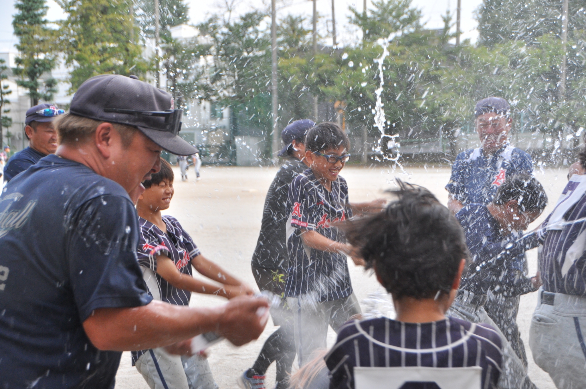 シャンパンファイトならぬ炭酸水ファイト!旭町野球クラブの優勝時のお楽しみ!
