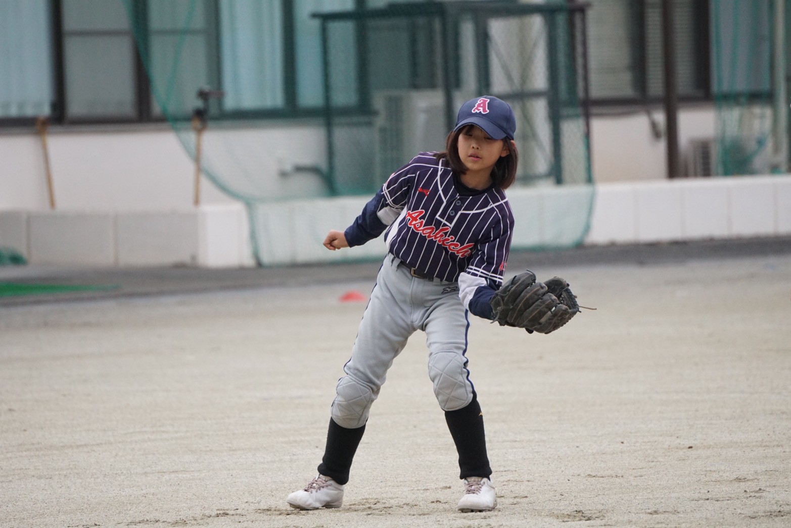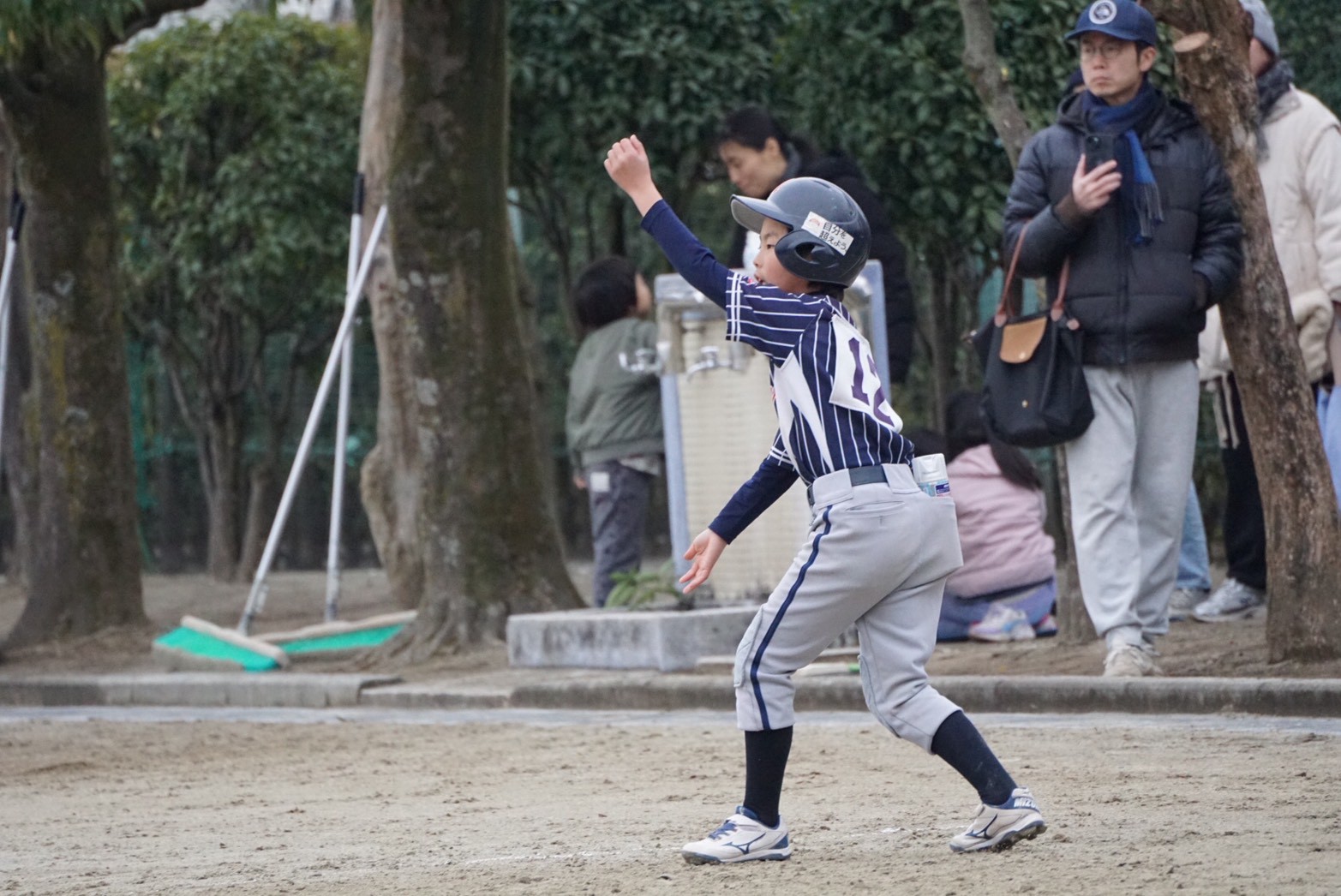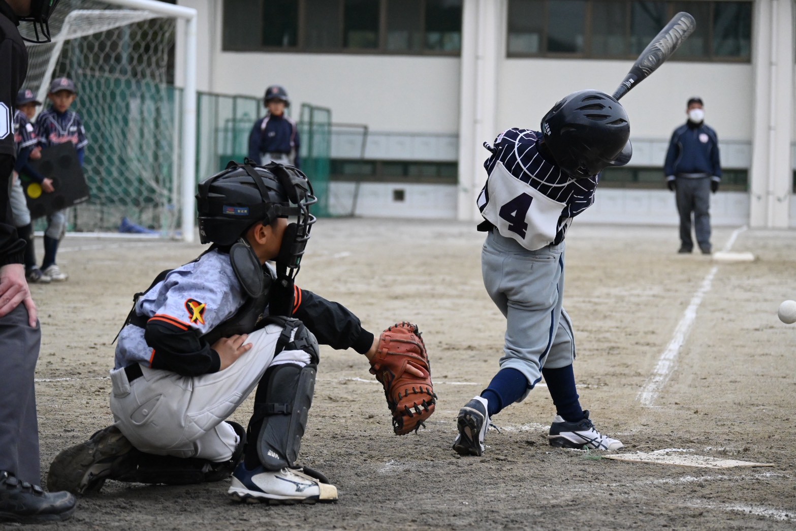 2月初旬、天気は曇り。まだまだ寒い中、冬の寒さも吹き飛ぶ全力スイング!