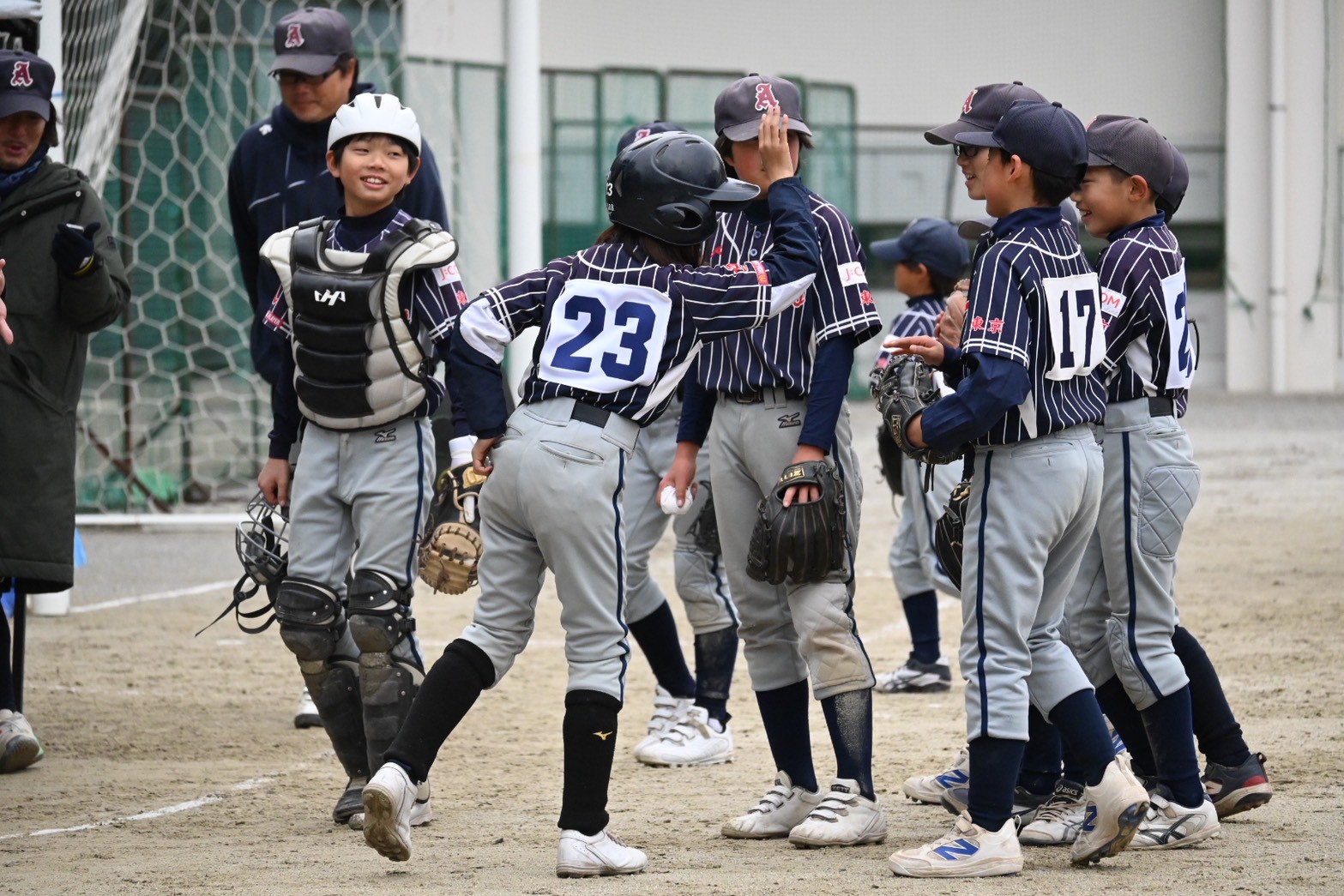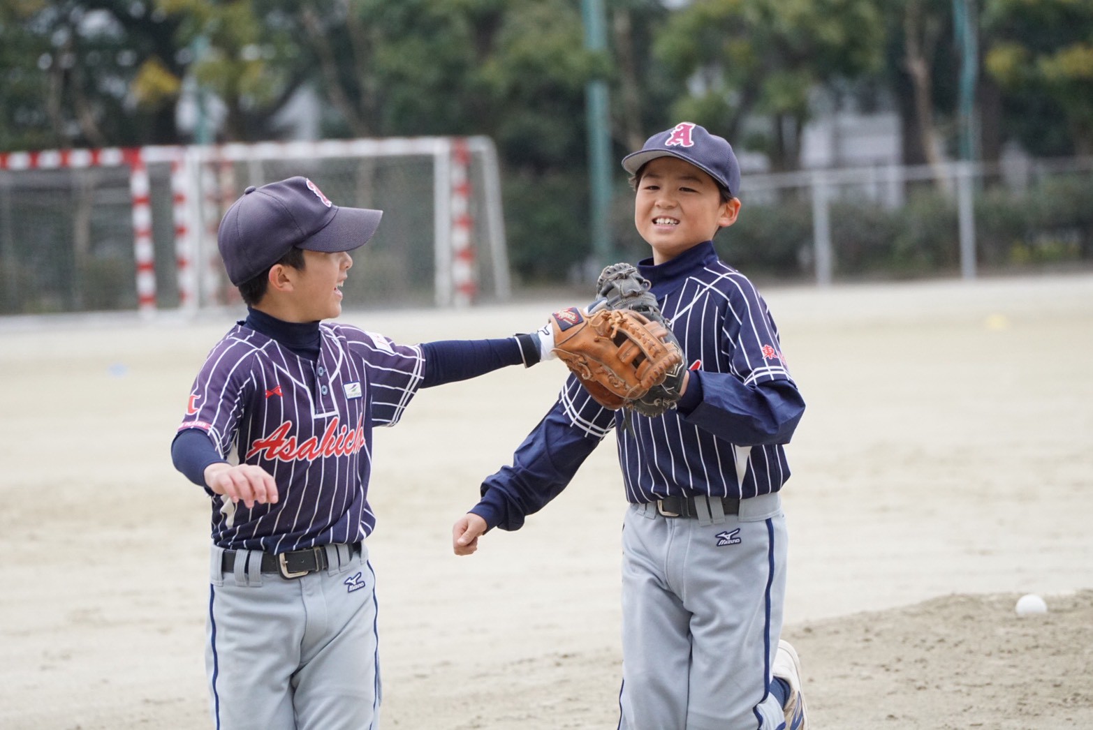 ピンチを凌げば、自然とこの笑顔が溢れ出します! 仲間とグローブを合わせる瞬間、やっぱり野球は、みんなで守って、みんなで喜びを分かち合うのが一番良い画になるね!