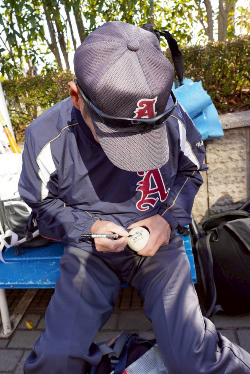 残念ながら負けてしまいましたが、最後はみんなで真中満さん縁のなにかの前で記念撮影。悔しさなんてどこへやら、この笑顔がある限り、旭町野球クラブの未来は明るい!