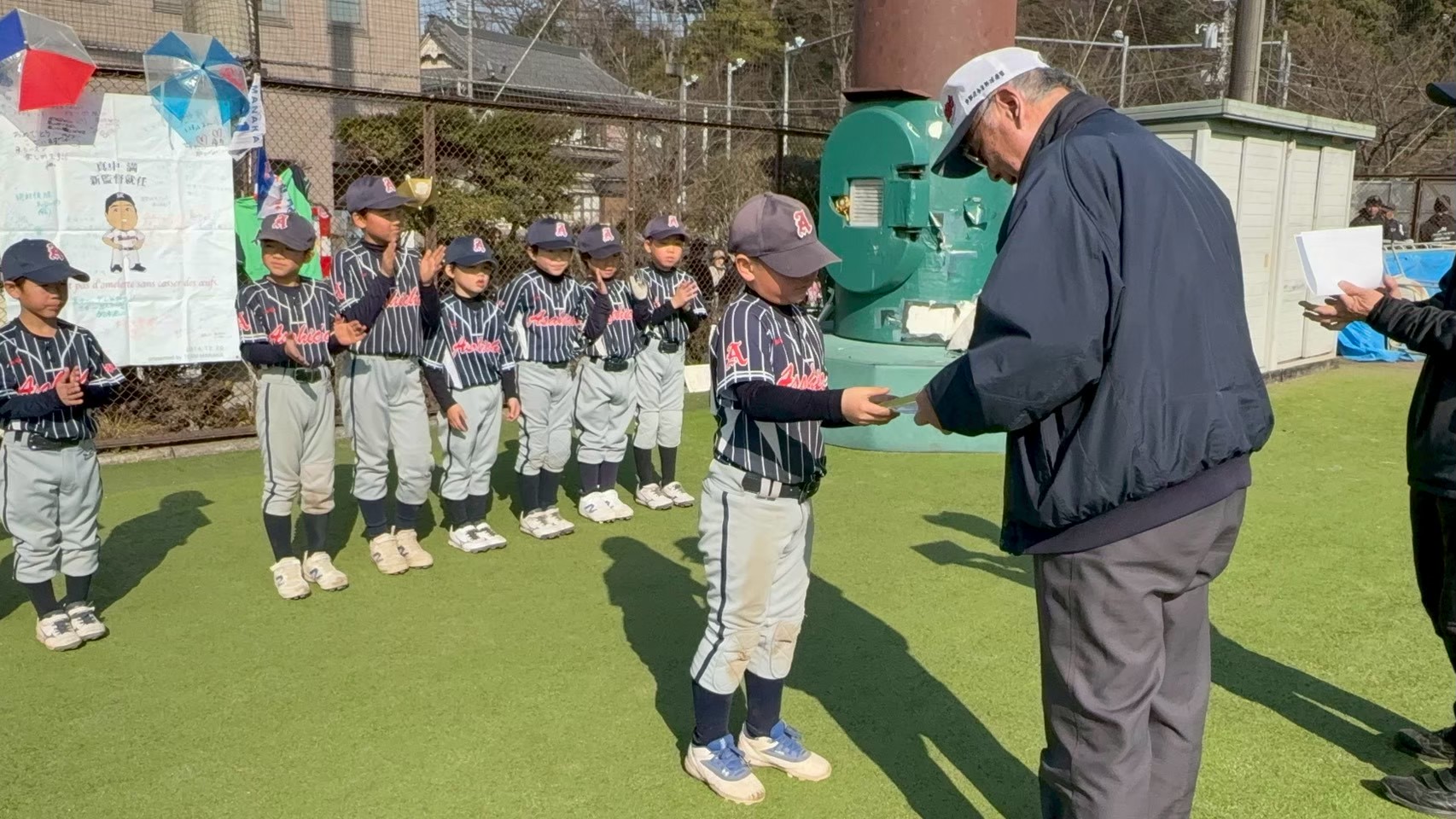 ホームランの4番バッターくんは表彰と、記念のホームランボールをゲット!
